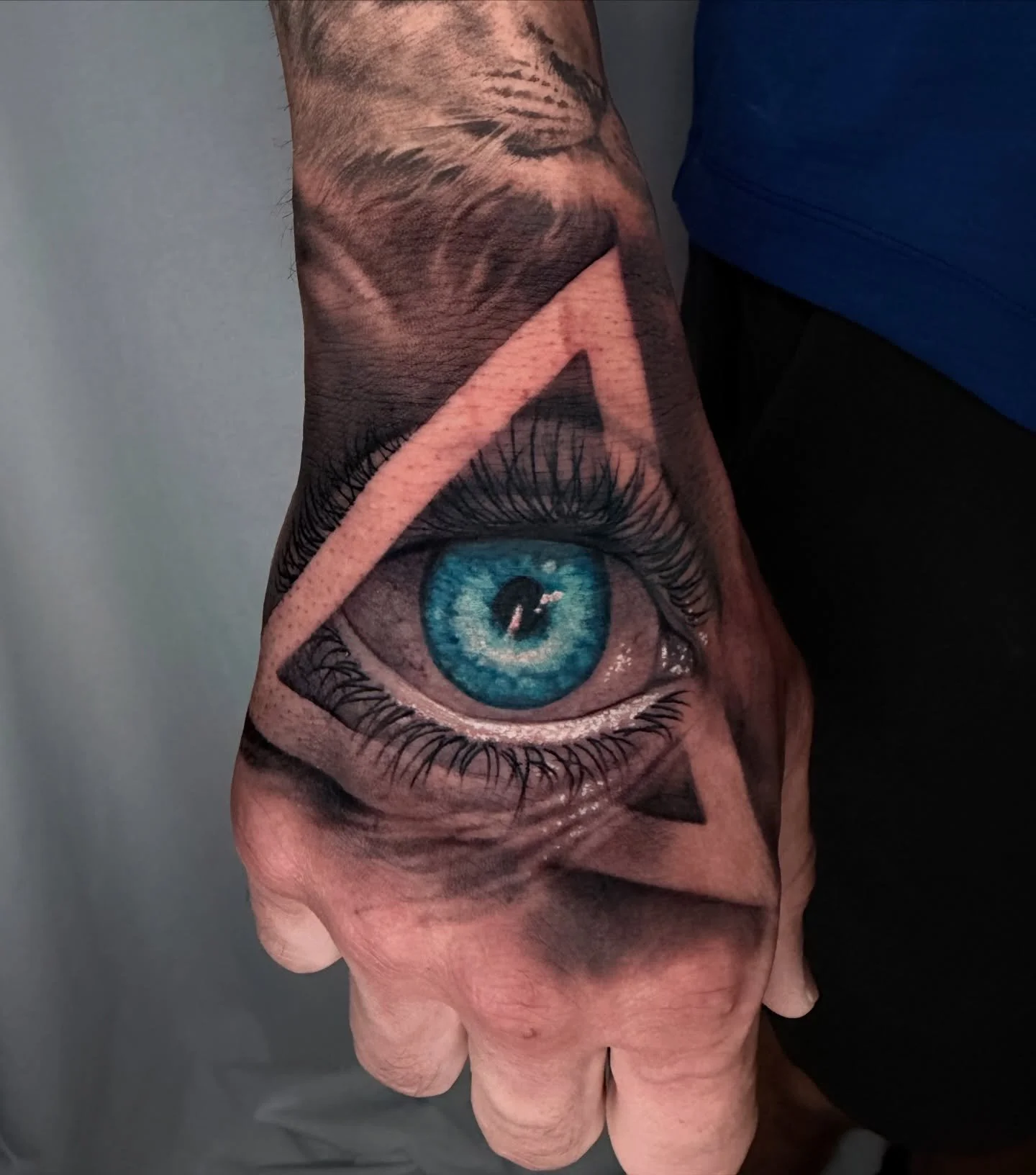 View fullsize The ole eyeball trick! #eyeball #color #blackandgrey #realism #illuminate @tightlinestattoocollective
